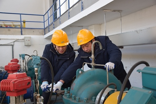 為保障嚴(yán)寒天氣下調(diào)水的安全穩(wěn)定,鄒平仁源周密部署、積極準(zhǔn)備,全力加強(qiáng)預(yù)報(bào)預(yù)測、巡查防守和應(yīng)急準(zhǔn)備。做好清淤工作,組織工作人員開展了胡樓引黃泵站攔污柵調(diào)水前清淤,同時(shí)組織檢修人員對潛水軸流泵進(jìn)行全面檢測維保,確保引水工作順利,引水水量達(dá)標(biāo)。加強(qiáng)預(yù)報(bào)預(yù)測,中控室全面把控各項(xiàng)數(shù)據(jù)監(jiān)測,通過自動(dòng)化調(diào)度和信息化系統(tǒng),緊盯氣溫、水溫及進(jìn)水泵站進(jìn)水情況,保障泵站設(shè)備運(yùn)行安全穩(wěn)定。保障巡查防守,加強(qiáng)對引黃渠道的巡查力度,安排專人每日往返60多公里的黃河干渠,進(jìn)行河道巡查、測流等保障任務(wù),并有序開展河道破冰除冰工作,及時(shí)處理因持續(xù)低溫導(dǎo)致的渠道過流能力下降等問題,保證渠道過水暢通,確保調(diào)水工作運(yùn)行有序。