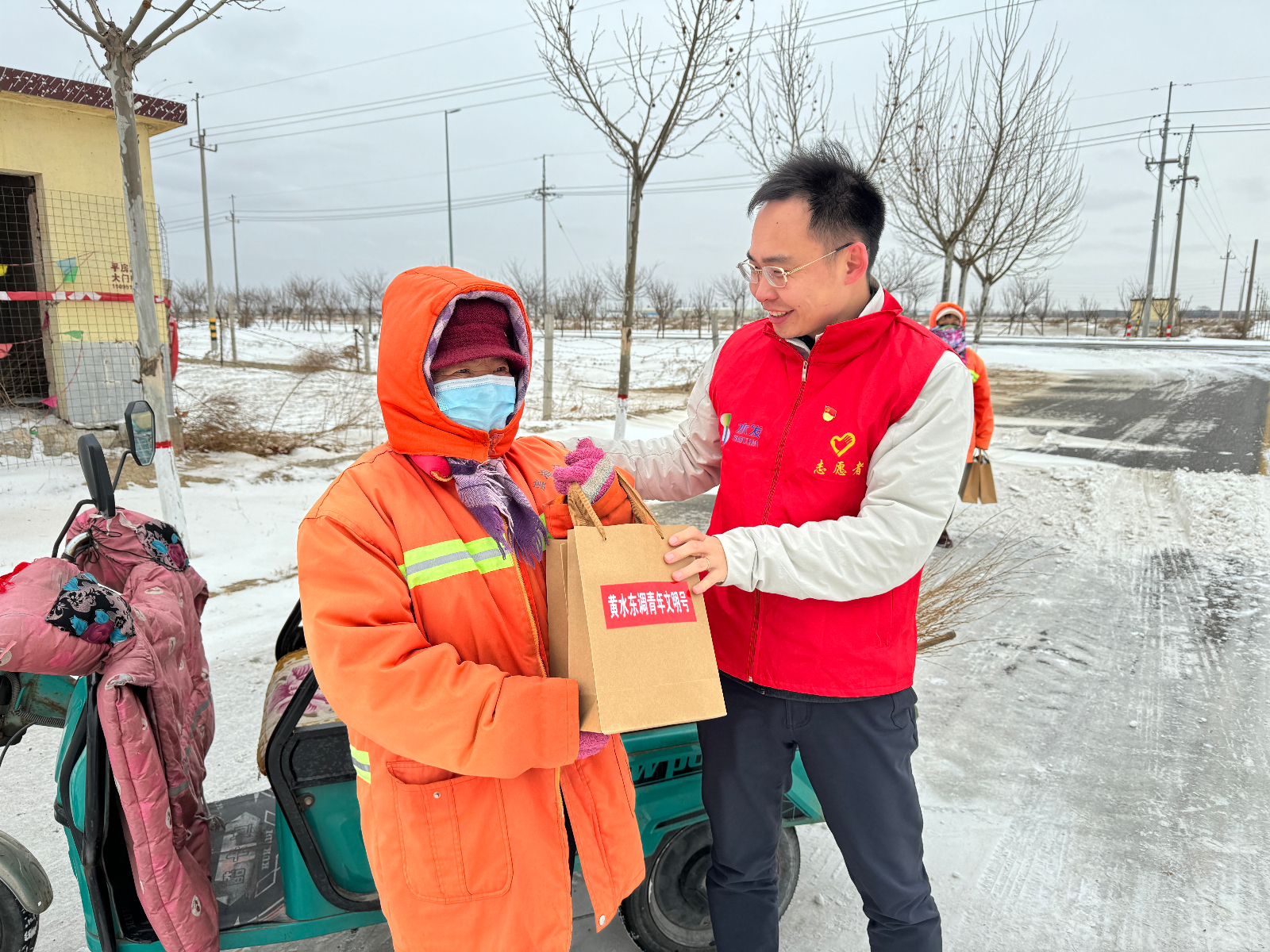 環(huán)衛(wèi)工人是生活中最平凡的人,也是最不可或缺的人。他們每天踏著晨曦去,披星戴月歸,冒酷暑頂嚴(yán)寒,始終戰(zhàn)斗在保障環(huán)境衛(wèi)生工作的第一線。青年志愿者準(zhǔn)備了溫暖的手套和美味元宵,送到環(huán)衛(wèi)工人手中,同時也送上了元宵節(jié)的祝福,感謝他們對城市環(huán)境所做出的貢獻(xiàn),希望他們在初春中感受到一份溫暖。