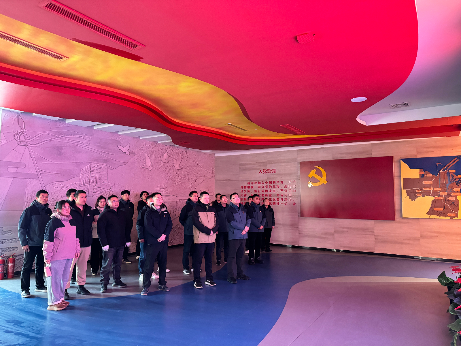 隨后,全體人員赴濰坊市濱海黨性教育基地“奮進濱海展館”參觀學習,該展館以紅色歷史為起始,以時間年輪為軸線,以濱海歷史發(fā)展的16個重大事件為關(guān)鍵節(jié)點,講述濱海歷史故事中傳承紅色基因,尋跡濱海滄桑巨變中弘揚精神信仰,全面展示了濱海區(qū)共產(chǎn)黨員的初心使命。通過參觀教育基地,使全體黨員的靈魂受到了深刻洗禮,思想經(jīng)歷了新的升華,黨性得到了有力錘煉。